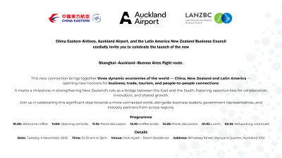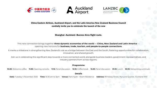 Launch of the China Eastern Airlines new route: Auckland–Shanghai–Buenos Aires Route